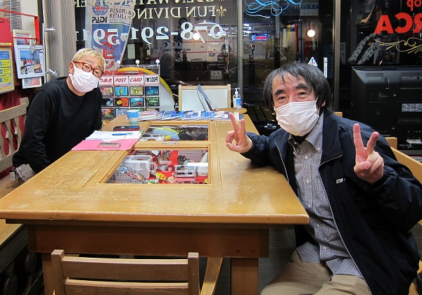 | 2021年4月9日(金) アオリイカ産卵床入りました! 先日、ニュースでご覧になった方もいらっしゃるかもですが、 恒例の串本の海に、アオリイカの産卵床が設置されました! 去年は、ちょうど緊急事態宣言真っただ中で、 アオリイカの産卵シーズンはほぼほぼ潜れず… 今年こそは、あの感動的な大産卵シーンを目の当たりにしたいですね(^_-)-☆ まん防も始まり、感染者数にやきもきする日々がまだ続いてしまいそうですが 感染防止を徹底しながら、 海の中の穏やかな世界に時には癒されてくださいね。 夕方には、Rさんがお越しになって、なんと社長と「あけおめ」なことが判明! 今年も宜しくお願いいたします! ![]() Sちゃんも今月はお休みが取れたので、 ![]() 今から、串本へ行ってまいりまーす!! ~臨時休業のお知らせ~ 大変申し訳ありませんが、ツアーのため 4月10日(土)~11日(日)まで、臨時休業となります。 ご迷惑をおかけしますが、宜しくお願いいたします! なお、休業期間中も、電話及びメールは転送されますので、 御用の方はご利用ください! |