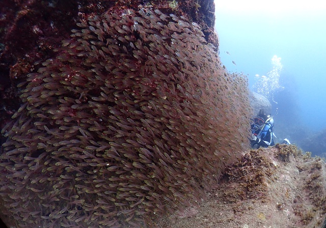 | 2021年10月11日(月) いい潮入りました~!! 前の週末は、台風通過の影響でニゴニゴ…だったのですが、 週の半ばからだんだんいい潮が入ってきて、 串本ブルーが帰ってきましたよ~(^-^) キビナゴ祭りに、相変わらずの回遊魚祭り♪ 海が青いので、よりかっこよく見えます!!迫力満点(^-^) ![]() そして、一時期食べつくされかけていたキンメモドキもどこからともなく増殖中!! しばらくこの光景を楽しませてほしいなぁ~♪ ![]() そして、一気に増えたのが、ホホスジタルミとマダラタルミの幼魚!! ほぼどのポイントでも見かける位で、ほんとに嬉しいビックリです(^-^) ![]() そんな青い海を満喫して帰ってきたゲスト様です~♪ ほーんとに最高でしたね(^_-)-☆ ![]() そして、週明けの本日、たまたま関西へ週末遊びに来られていたTご夫妻 本当に超お久しぶりにお店にお立ち寄りくださいました! なんと、諸事情で潜りに来れてなくて、今年のカレンダーをもらってなかったので、 お家と職場のカレンダーは、2020年の12月のままなんですって~^_^;(笑) たまたま少しだけ残っていた今年のカレンダーをお渡ししました! ![]() 来年こそは潜りに!そして、記念ダイブ迎えてくださいね~(^_-)-☆ それでは、明日は定休日のため、 また水曜日にお会いしましょう~(^-^) |