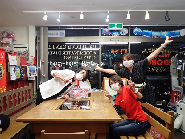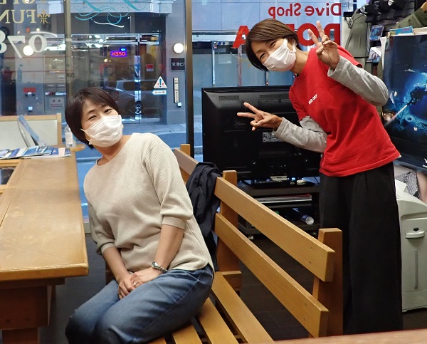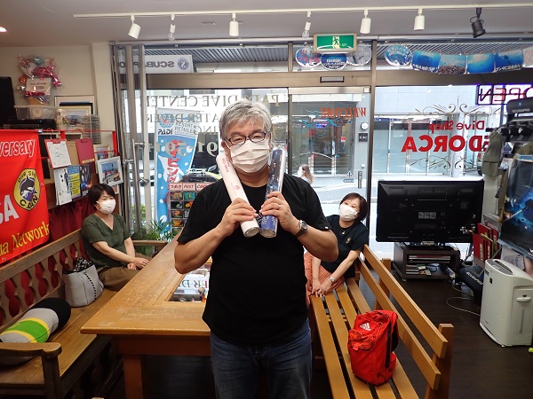| 2021年10月28日(木) お久しぶりの 今日は、秋晴れのいいお天気でしたね~(^-^) そんな本日は、Oさんがお久しぶりに遊びにお越しくださいました! 懐かしいゲストさんのお話などで盛り上がり、 早く海外ツアーに行けるようになったらいいのにね~と(^_-)-☆ ![]() 海外に行ける日も、きっとそう遠くはないと信じて、 体力つけて待っててくださいね~\(^-^)/ 夕方には、ワールドダイブさんやBismさんなどメーカーの営業の方も お越しいただき、色々お話を伺いました(^o^) 新商品のチタンのレギュレターとか、かなり気になりますね~♪ これから器材の購入をご検討の方、ぜひオススメなので、 いつでもご相談くださいね(^_-)-☆ それでは、また~!! ~臨時休業のお知らせ~ 大変申し訳ありませんが、ツアーのため、10月30日(土)~31日(日)は臨時休業となります。 なお、休業中も、メール及び電話は転送されますので、ご用の方はご利用ください。 ご迷惑をおかけしますが、宜しくお願いします。 |