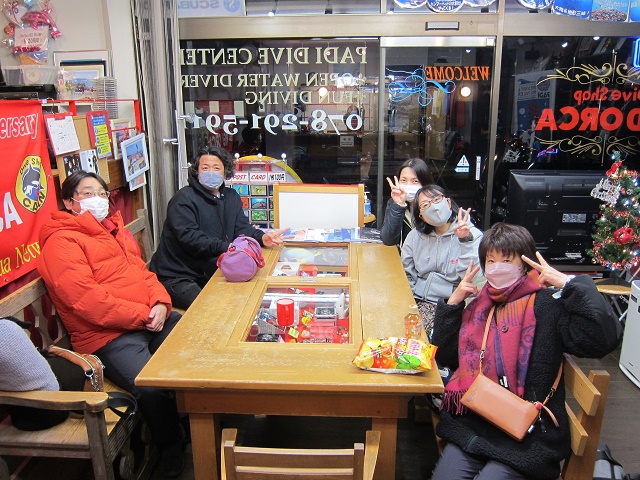 | 2021年12月19日(日) クエ鍋&天才水中写真家を囲む会♪ この週末は串本で潜って、クエ食べて、飲んで、 天才水中写真家 鍵井靖章さんを囲む会も開催(^-^) 土曜日は荒れ模様とにごりもありましたが、 日曜には、嘘のように透明度が回復し、改めて串本の海の力を感じました! そんなツアーにご参加いただいた皆様、 本当に有難うございました\(^-^)/ ![]() また来年もダイビングを通して、楽しい時間を皆様と過ごせればと思います♪ まだ年内に会うかもですが、一応「よいお年を~♪」とご挨拶しましたよ(^_-)-☆ 今年も残すところ10日余りとなって来ましたが、 体調管理に気を付けて、楽しい年末にしましょうね! それでは、また明日~(#^.^#) |