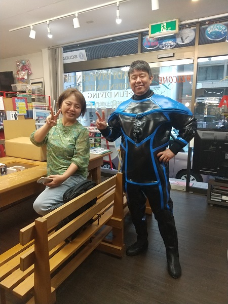 | 2022年7月22日(金) NEWドライ来た! 今日は、お仕事終わりにIさん&Eちゃんがご来店♪ IさんのNEWドライスーツが届いたので、早速試着です(^-^) めちゃくちゃ動きやすそうですね~\(^-^)/ 早く使いたくてウズウズしちゃいますね♪ 夜には、OWのお申込みもいただいて、この夏は賑やかな夏になりそうな予感です! それでは、私は今夜から串本へ~! 恐れ入りますが、月曜日まで臨時休業となります。 宜しくお願いします! ~臨時休業のお知らせ~ 恐れ入りますが、ツアーのため、 7月23(土)~25日(月)は臨時休業とさせていただきます。 なお、休業中も、メールは転送されますので、 ご用の方はご利用ください。 ご迷惑をおかけいたしますが、宜しくお願いします。 |
