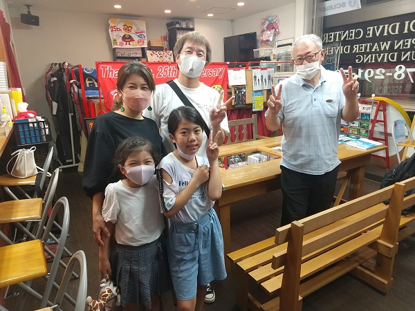 | 2022年7月8日(金) ダイビングを始めたい! 今日は少しだけ過ごしやすい?と思いましたが、 やっぱり外から来られたら暑かったみたいです(>_<) ![]() 夜にはSさんファミリーがダイビングを始めたい!と ご来店くださいました!! たまたまご両親が始めたいタイミングと、娘さんの始めたいタイミングが ぴったりそろうってなかなか凄くないですか~\(^-^)/ ![]() まずは学科の予習、頑張ってくださいね! それでは、そろそろ串本へ向かう準備をしますね\(^-^)/ ~臨時休業のお知らせ~ 恐れ入りますが、ツアーのため、 7月9(土)~10日(日)は臨時休業とさせていただきます。 なお、休業中も、メールは転送されますので、 ご用の方はご利用ください。 ご迷惑をおかけいたしますが、宜しくお願いします。 |