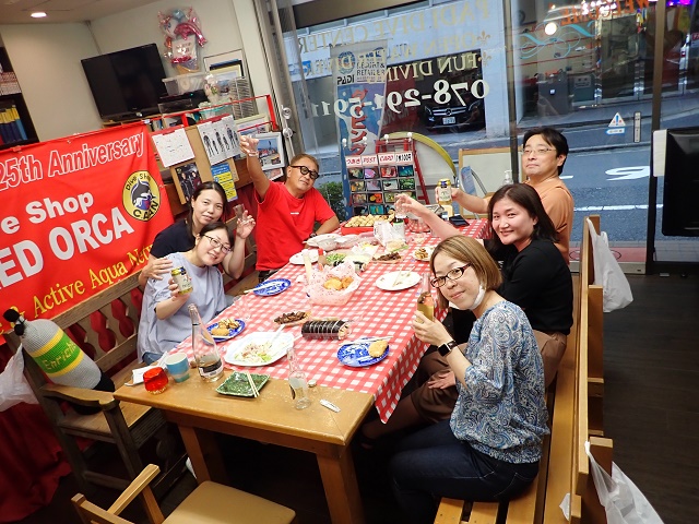 | 2022年9月9日(金) ダイビングの申し子現る! 今日は、雨が降ったり止んだりの1日でしたね。 しばらくは南からの湿った空気の影響で不安定なお天気が続きそうですが、 皆様、体調管理にはお気を付けくださいね! さて、そんな本日は、お店にダイビング一家のDさんファミリーがご来店! 長い間のブランクから今年は脱却を目指すYさんの器材のオーバーホールetc 気が付くと、ダイブコンピューターもバッテリーが切れてたりするんですよね。 そんなDさんファミリーの長女 Eちゃんは、 まさにダイビングの申し子! 串本生まれ、小さい頃は串本育ちで海が大好きだったEちゃんは なんとすでに何回かダイビングを経験済み! まるで水を得た魚のように潜る姿はまさにダイビングの申し子!! 来年あたりはいよいよライセンス取得かな? 英才教育で、いつか赤鯱の店長お願いしよっかな~(笑) 夜には、おじいちゃん世代のお二人も集合したので、 そろそろ串本へ行ってきますね~! 来週以降の営業の予定は未定なのですが、 台風12号の影響次第で、予定が変わって来るかもしれないので、 またフェイスブック&インスタなどでご案内しますね(^-^) 宜しくお願いします! ~臨時休業のお知らせ~ 恐れ入りますが、海の予定のため、 9月10日(土)~臨時休業とさせていただきます。 次回の営業につきましては、海況次第となりますので、 決まり次第、ホームページ及びSNSなどでご案内いたします。 なお、休業中も、メールは転送されますので、 ご用の方はご利用ください。 ご迷惑をおかけいたしますが、宜しくお願いします。 |