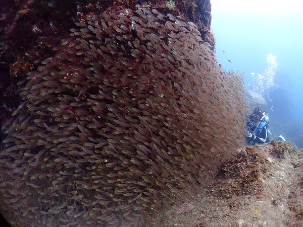 | 2022年10月6日(木) こういう季節がやって来ます♪ 10月に入って、すっかり、秋めいてきましたね~! 秋といえば、海の中も実り多い季節~♪ そういえば、去年の今頃もこんな光景が広がっていました(^-^) ![]() あっちもこっちも魚影の濃い水中! アンドの鼻のアザハタの根も絶賛いい感じですので、 このベストシーズンの海、皆さんぜひ潜りにお越しくださいね~\(^-^)/ ![]() 今週末は三連休! 明日も夜から串本へ行ってきまーす! ~臨時休業のお知らせ~ 恐れ入りますが、ツアーのため、 10月8(土)~10日(月)は臨時休業とさせていただきます。 なお、休業中も、メールは転送されますので、 ご用の方はご利用ください。 ご迷惑をおかけいたしますが、宜しくお願いします。 |
